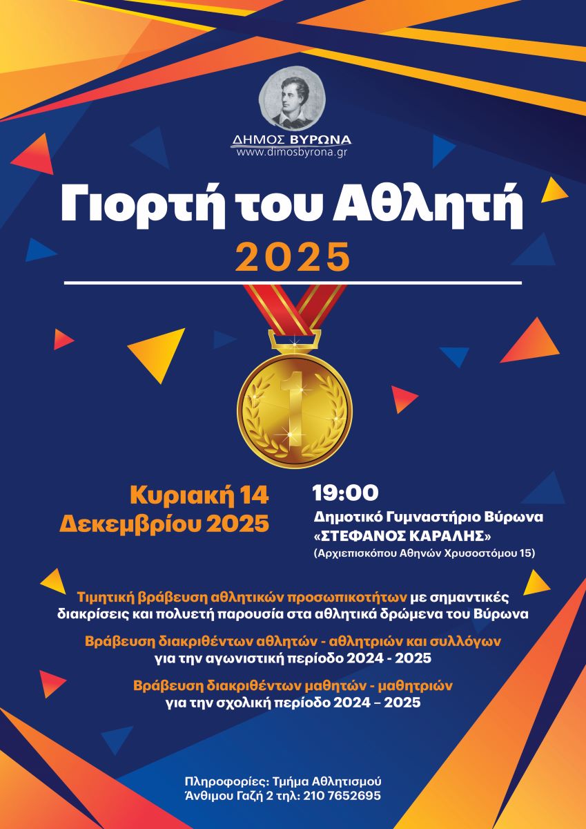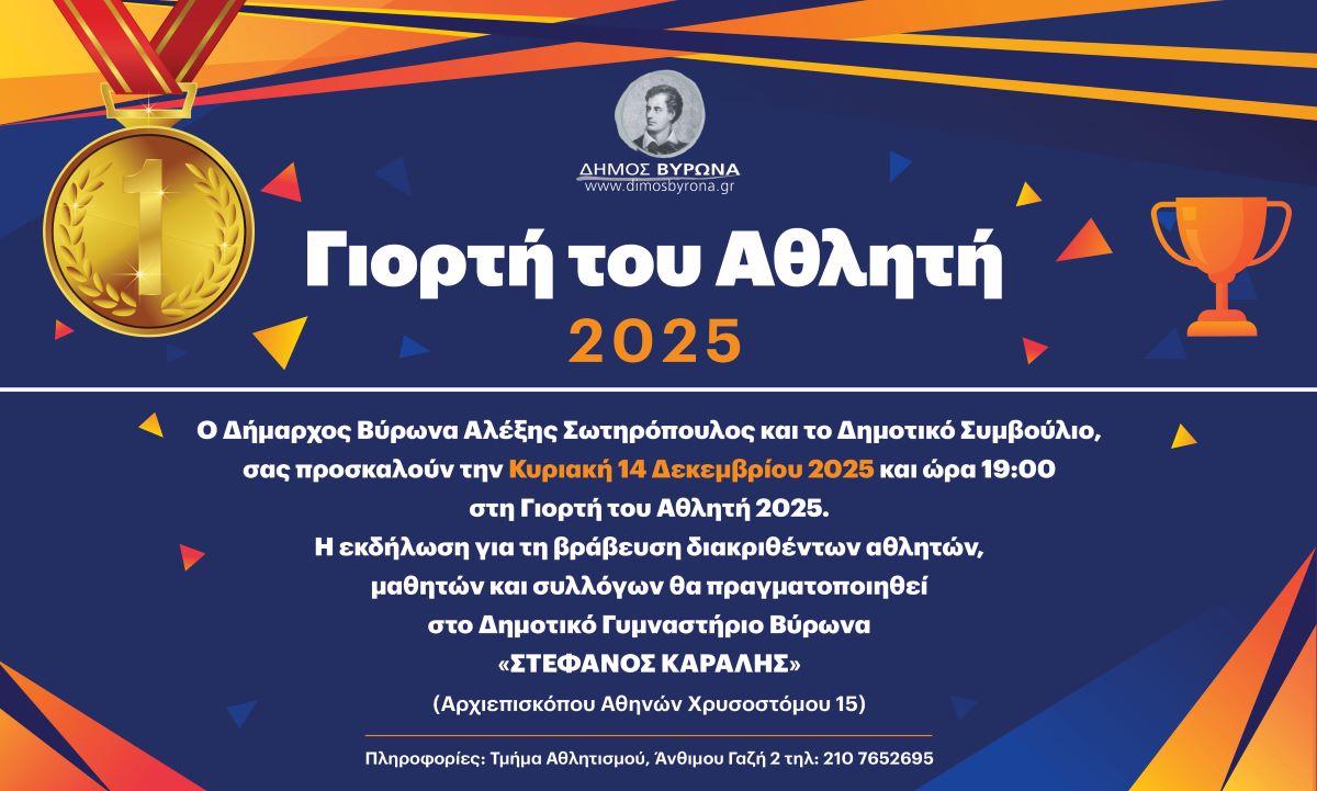 Γιορτή του Αθλητή 2025 στον Δήμο Βύρωνα – Κυριακή 14 Δεκεμβρίου 2025