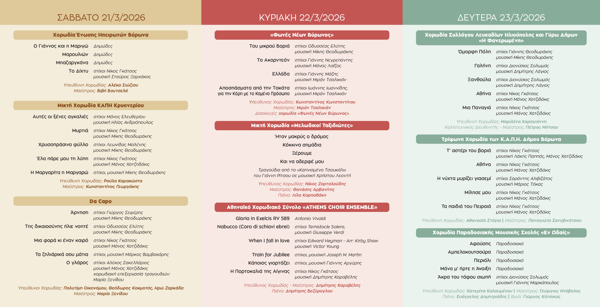 Σάββατο 21, Κυριακή 22 & Δευτέρα 23 Μαρτίου 2026