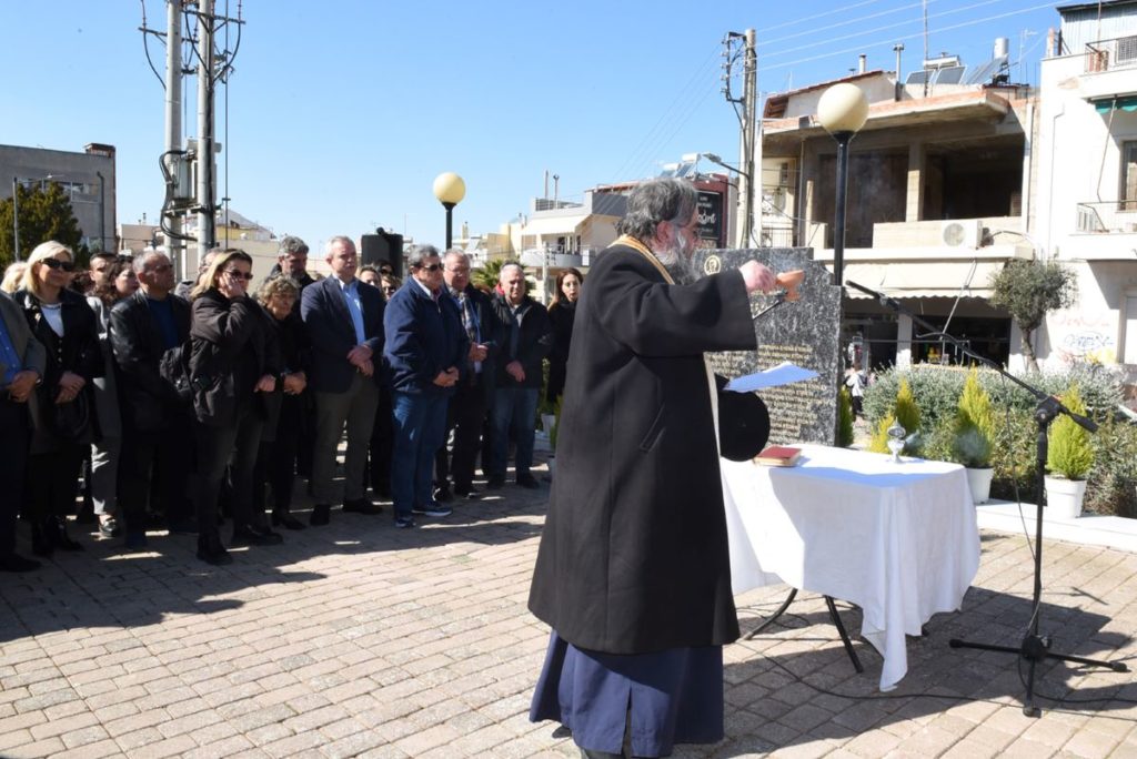 «Η συμπαράσταση και ο σεβασμός προς τον πόνο των συγγενών και η ανάγκη να μην ξεχασθούν οι 57 αδικοχαμένες ψυχές και να μην έχουμε άλλα Τέμπη στο μέλλον, οδήγησαν τη δημοτική αρχή να εισηγηθεί και το Δημοτικό Συμβούλιο να αποφασίσει ομόφωνα τον Ιούνιο του 2024 να ανεγείρει ένα λιτό μνημείο υπενθύμισης αυτής της τραγωδίας. Σήμερα, αποκαλύπτοντας το μνημείο αυτό, ενώνουμε τη φωνή μας με εκείνη των συγγενών και σύσσωμης σχεδόν της ελληνικής κοινωνίας, που απαιτούν απαντήσεις για το τί συνέβη εκείνη τη μοιραία νύχτα, για το τί οδήγησε σ’ αυτήν την τραγωδία, για την απόδοση δικαιοσύνης και ευθυνών, για ασφαλείς σιδηροδρόμους».