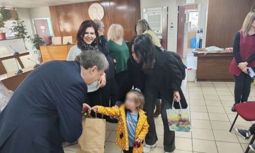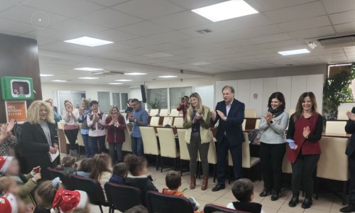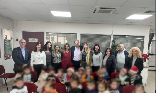 Οι  μικροί  μαθητές των Παιδικών Σταθμών τραγούδησαν Χριστουγεννιάτικα κάλαντα και τραγούδια και ο Δήμαρχος τους καλωσόρισε και τους ευχήθηκε Καλά Χριστούγεννα με υγεία, αγάπη και πολλά χαμόγελα.
