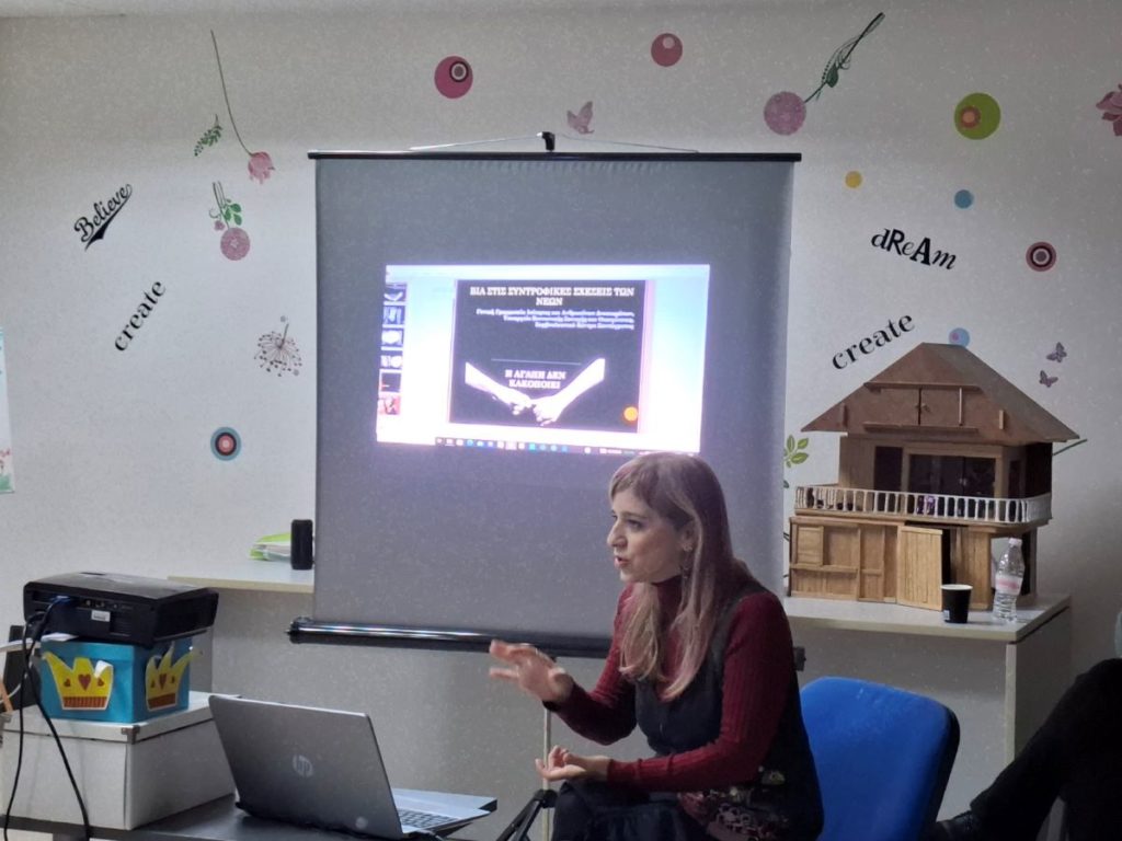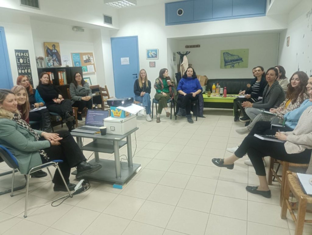 Οι ομιλήτριες του Συμβουλευτικού Κέντρου Αθήνας, κα Αποστολίδου Έλενα –Κοινωνιολόγος & Κοινωνική Σύμβουλος και η κα Σιώζου Ειρήνη – Νομική Σύμβουλος, με τις εξειδικευμένες γνώσεις και την πολύτιμη κλινική τους εμπειρία, ανέλυσαν το φαινόμενο της ενδοοικογενειακής βίας, καθώς και θέματα ψυχοκοινωνικής και νομικής στήριξης γυναικών θυμάτων βίας, συμβάλλοντας στην περαιτέρω κατάρτιση του προσωπικού της Κοινωνικής Υπηρεσίας παρέχοντας απαραίτητα εργαλεία και γνώσεις στο θέμα της βίας μέσα στην οικογένεια – και κυρίως στις γυναίκες θύματα. Ιδιαίτερη έμφαση δόθηκε στη διαχείριση περιστατικών κακοποίησης σύμφωνα με την ισχύουσα νομοθεσία.