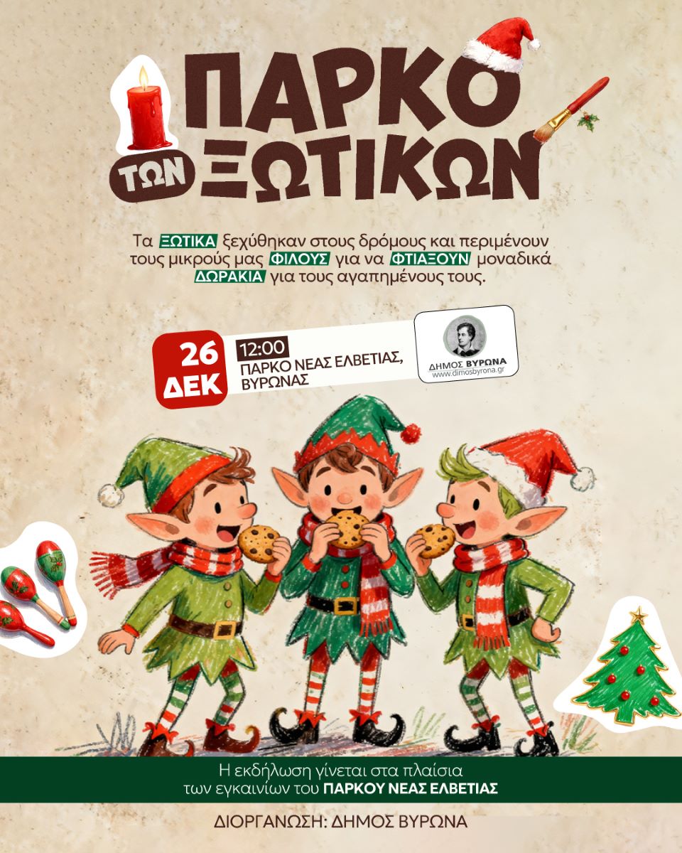 Στο πλαίσιο των εγκαινίων θα πραγματοποιηθεί η παραμυθένια εκδήλωση «Το Πάρκο των Ξωτικών», όπου τα ξωτικά θα περιμένουν τους μικρούς μας φίλους να φτιάξουν μοναδικά δωράκια για τους αγαπημένους τους!