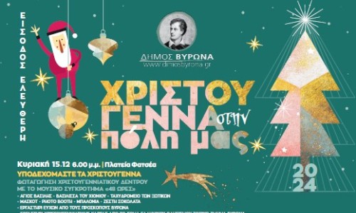 Ο Βύρωνας φοράει τα γιορτινά του και υποδέχεται τα Χριστούγεννα του 2024 με ένα πλούσιο πρόγραμμα χριστουγεννιάτικων πολιτιστικών εκδηλώσεων από τις 15 Δεκεμβρίου και για 2 εβδομάδες.