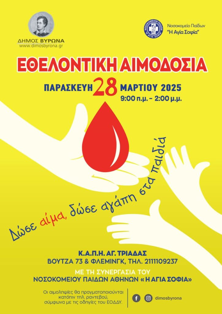 Εθελοντική Αιμοδοσία του Δήμου Βύρωνα, Παρασκευή 28 Μαρτίου 2025
