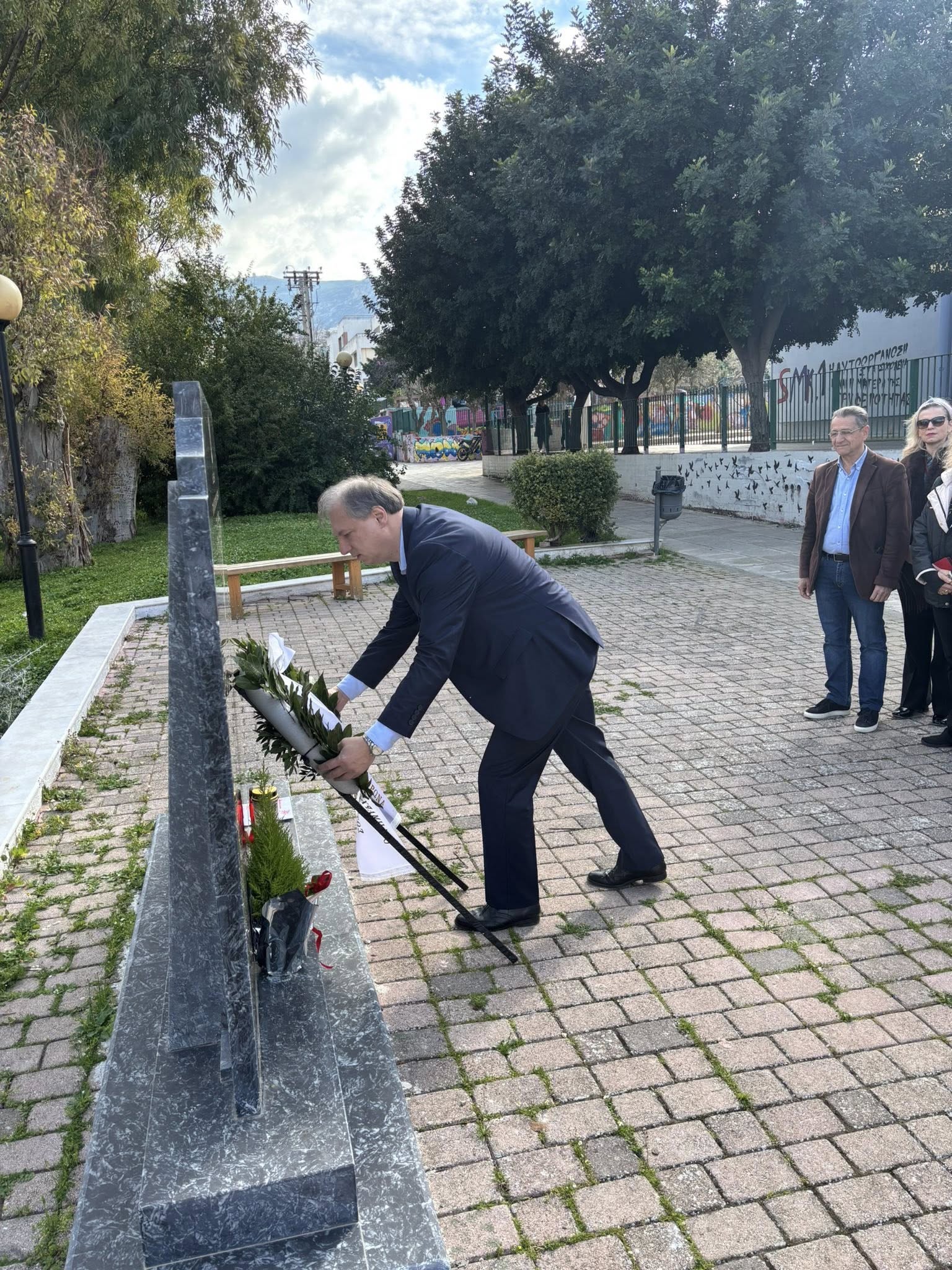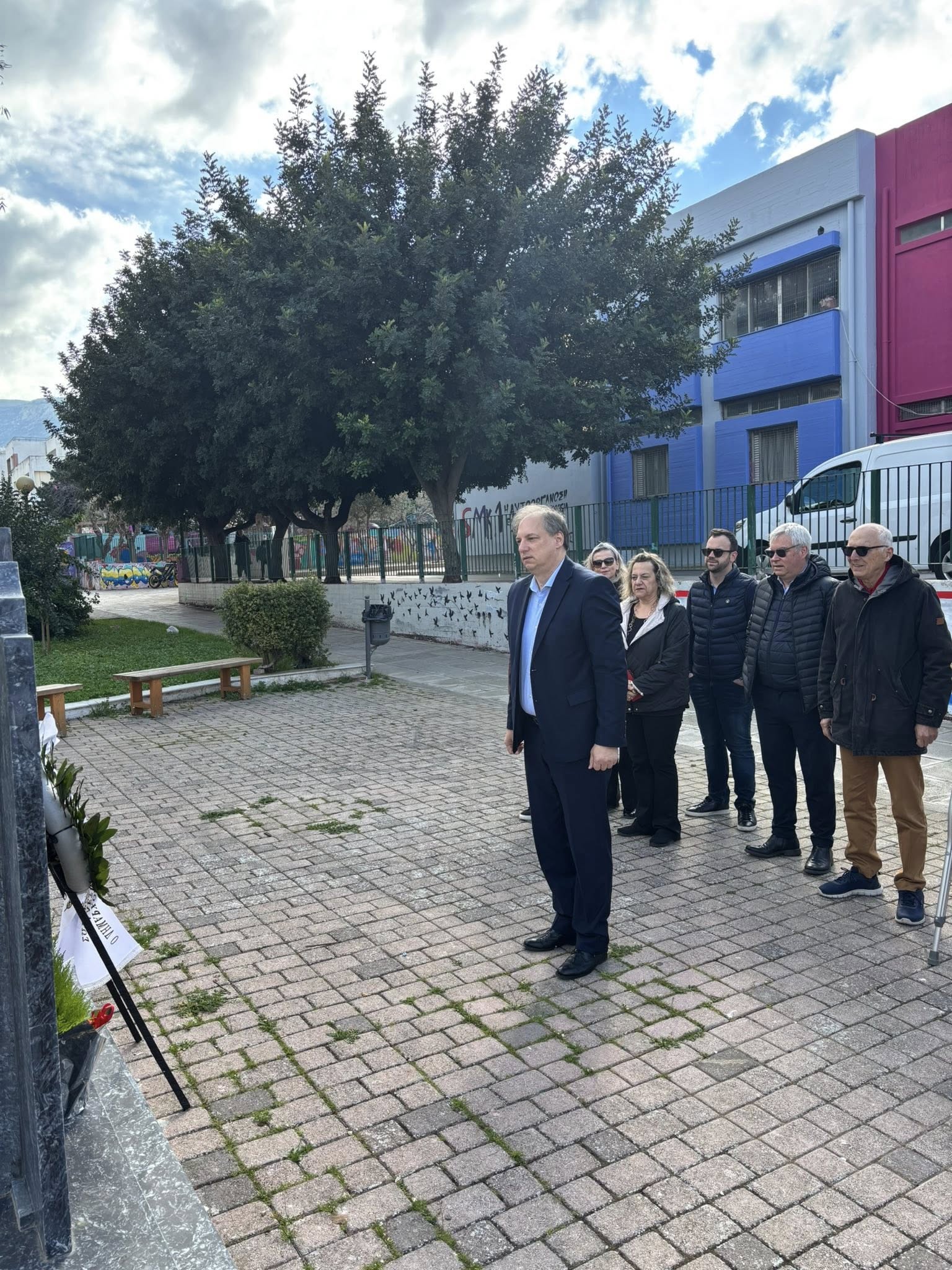 Ο Δήμαρχος Βύρωνα, Αλέξης Σωτηρόπουλος, μαζί με αντιδημάρχους και εντεταλμένους συμβούλους, κατέθεσε το Σάββατο, 28 Φεβρουαρίου 2026, στεφάνι στο μνημείο που βρίσκεται στην οδό Ταταούλων, αποτίοντας φόρο τιμής στη μνήμη των 57 συνανθρώπων μας που έχασαν άδικα τη ζωή τους στα Τέμπη.