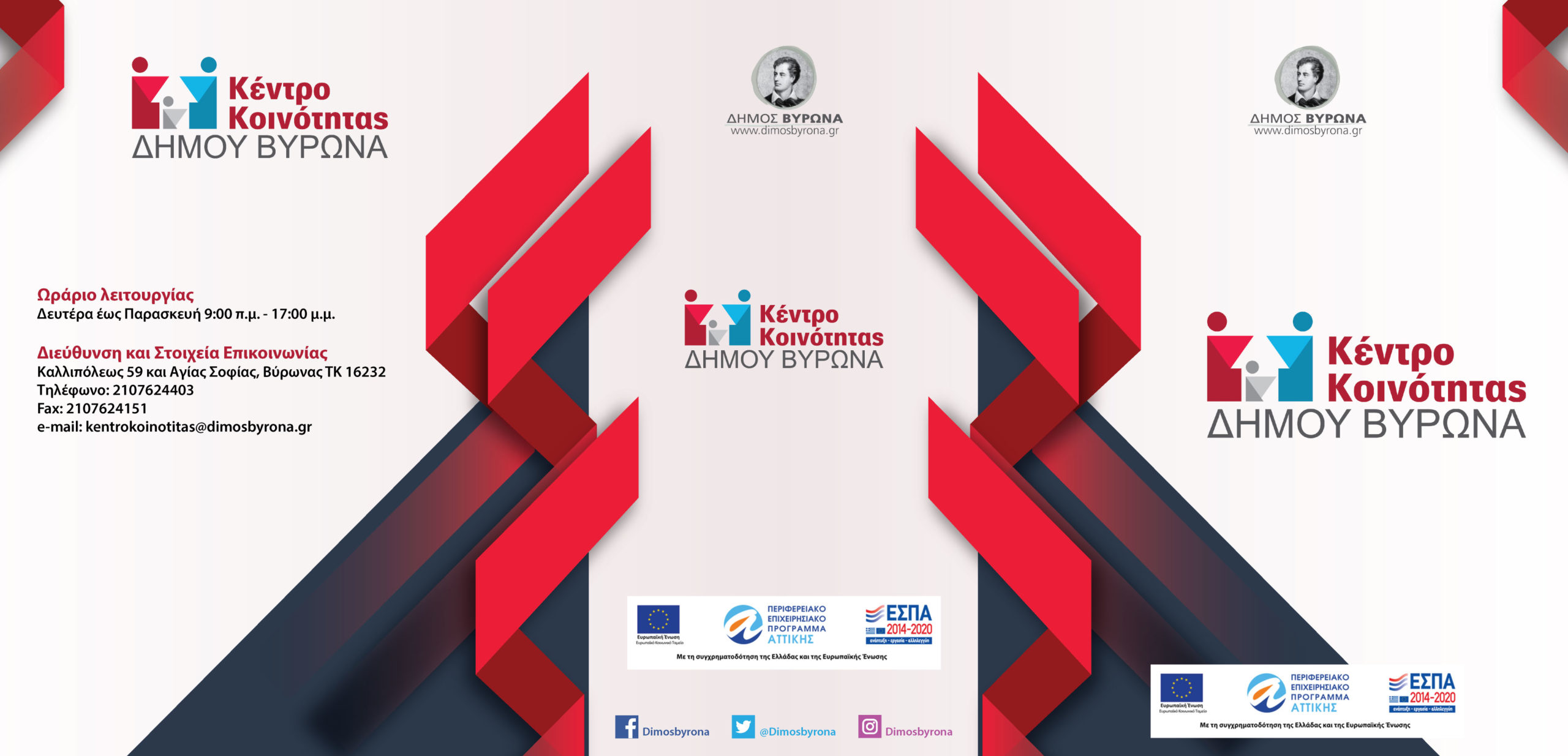 Τηλ.: 210 7624403, 210 7660202, e-mail: kentrokoinotitas@dimosbyrona.gr