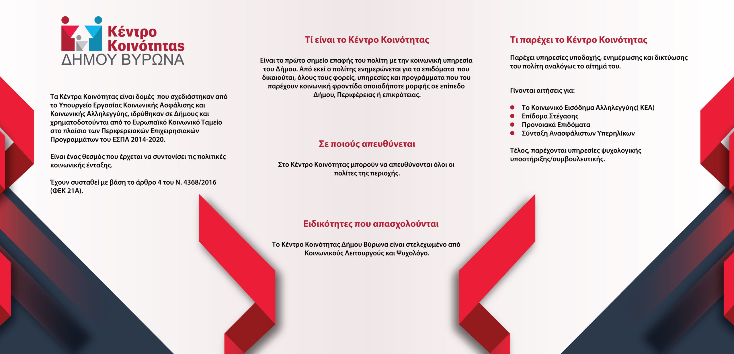 Στο Κέντρο Κοινότητας μπορούν να απευθύνονται όλοι οι πολίτες της περιοχής.