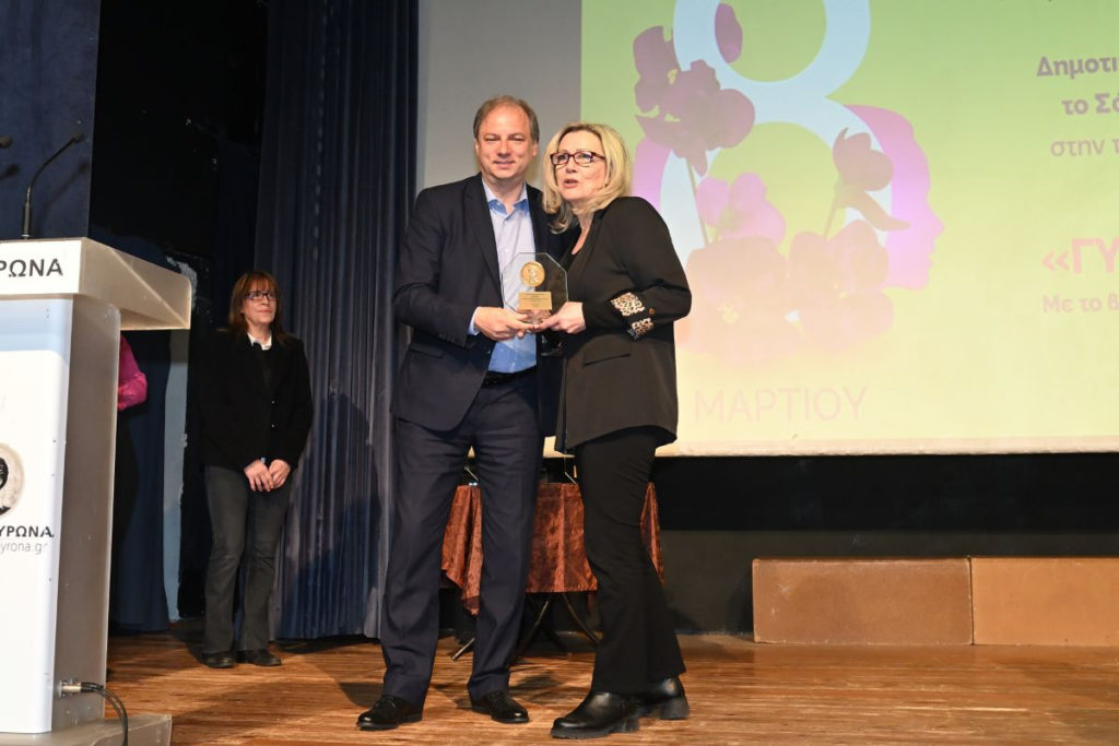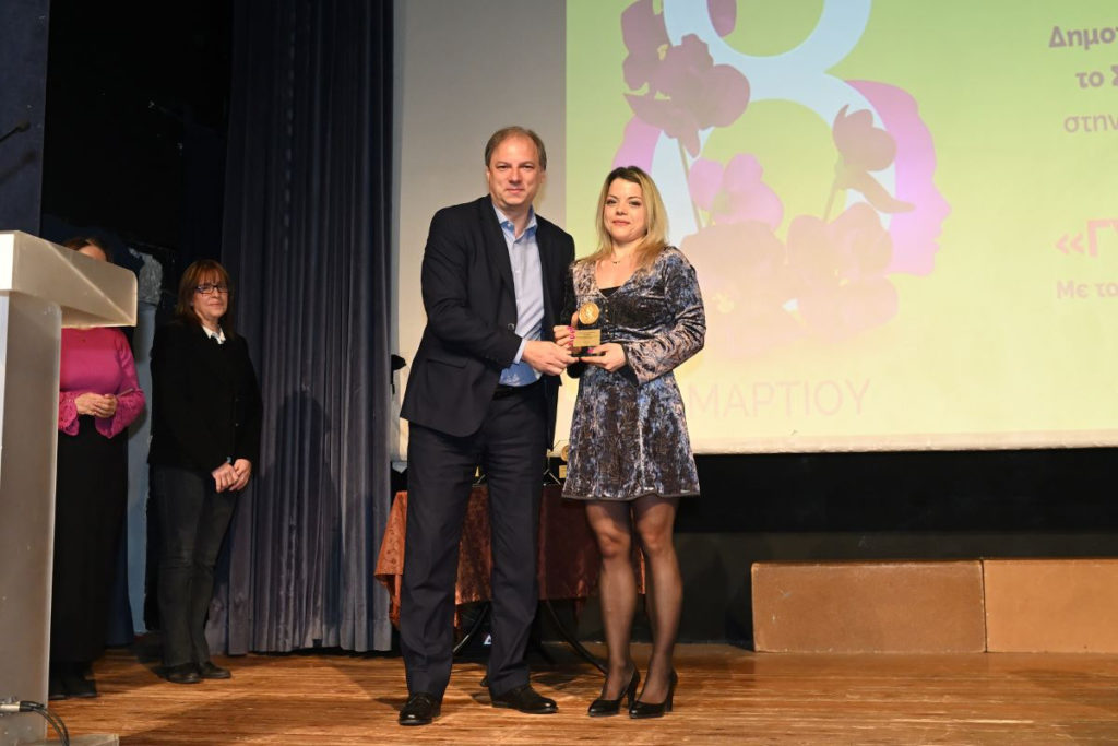 Η εκδήλωση έκλεισε με τη βράβευση όλων των εργαζόμενων γυναικών του Δήμου. Ο Δήμαρχος, αφού ευχαρίστησε όλες τις γυναίκες που προσφέρουν τις υπηρεσίες τους στο Δήμο, απένειμε τιμητικές πλακέτες στις Προϊστάμενες των Διευθύνσεων, Μαρία Φραγγεδάκη, Μαριλίνα Μπαδικιάν, Δώρα Ξυλογιάννη, Μαριάννα Τζοβάρα, εκ μέρους της Σοφίας Θωμοπούλου παρέλαβε το βραβείο η Κατερίνα Δεσποτίδου και εκ μέρους της Μαρίας Δραγκιώτου παρέλαβε το βραβείο η Μαρία Τζανέλλου.
