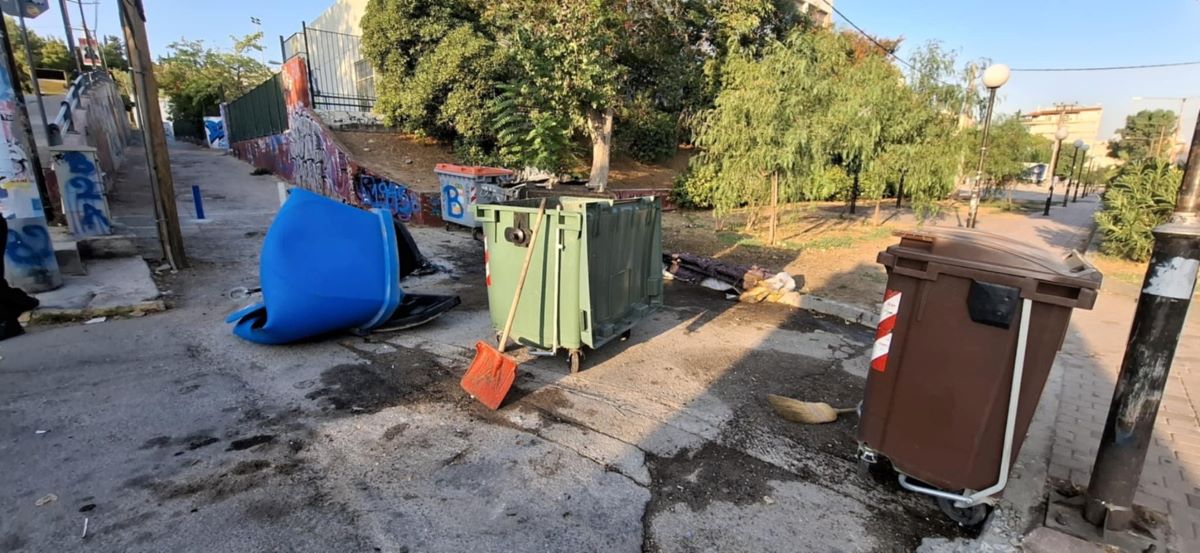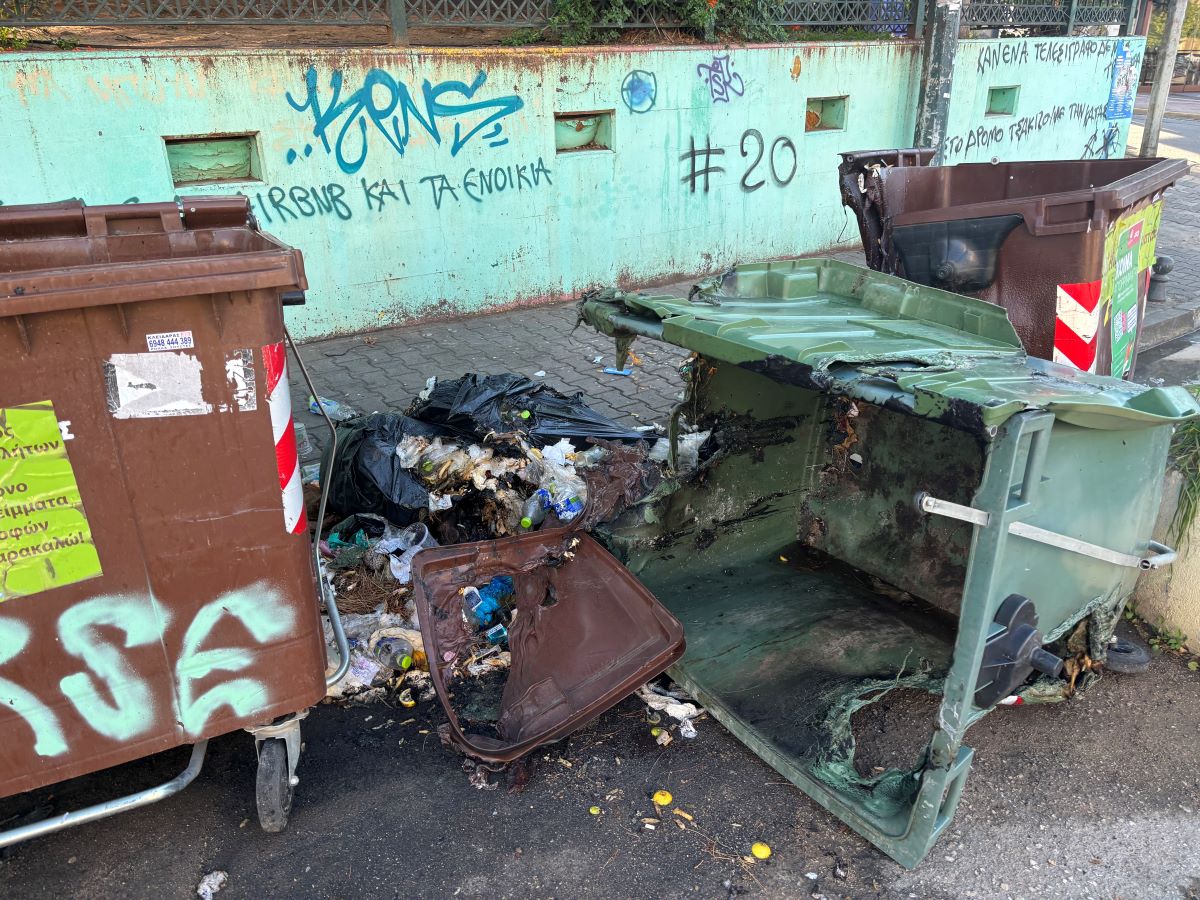 Οι αρμόδιες υπηρεσίες του Δήμου προχώρησαν άμεσα στην απομάκρυνση των κατεστραμμένων κάδων και στον καθαρισμό των σημείων.