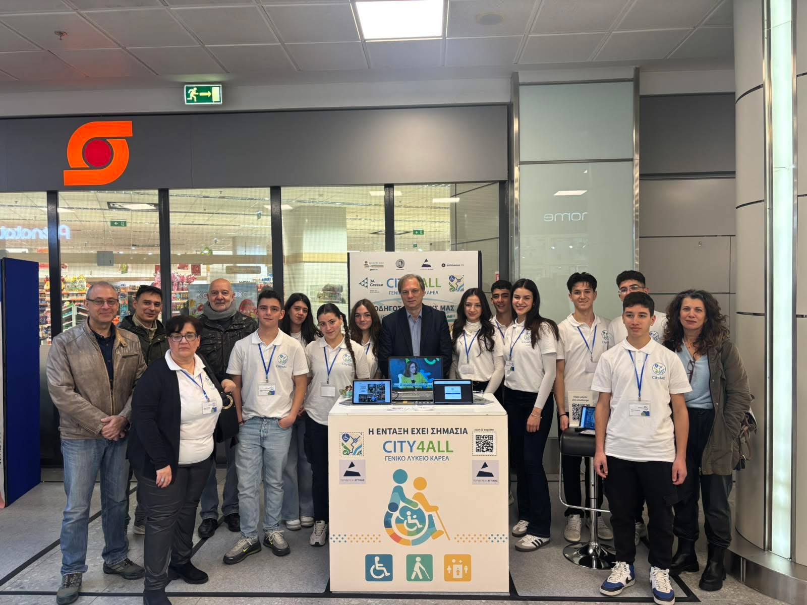 Η μαθητική ομάδα City4All του Λυκείου Καρέα ξεχώρισε στη Μαθητική Εμπορική Έκθεση Αθήνας 2026, προκρινόμενη στον αντίστοιχο πανελλαδικό διαγωνισμό. Η καινοτόμος εφαρμογή που δημιούργησαν αναδεικνύει σημαντικές πληροφορίες για την προσβασιμότητα δημόσιων χώρων, προσφέροντας πρακτικές λύσεις για μια πιο δίκαιη και ανθρώπινη καθημερινότητα.