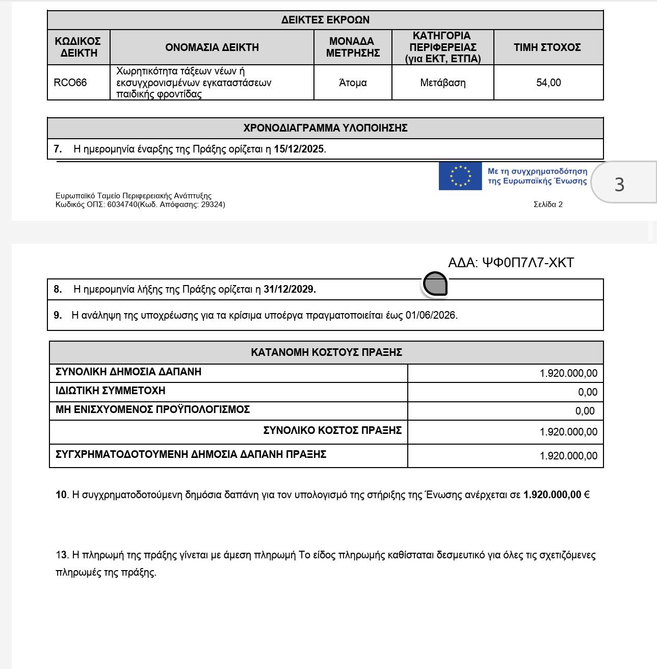 Το έργο θα χρηματοδοτηθεί από το Περιφερειακό Πρόγραμμα «Αττική 2021–2027» του ΕΣΠΑ.