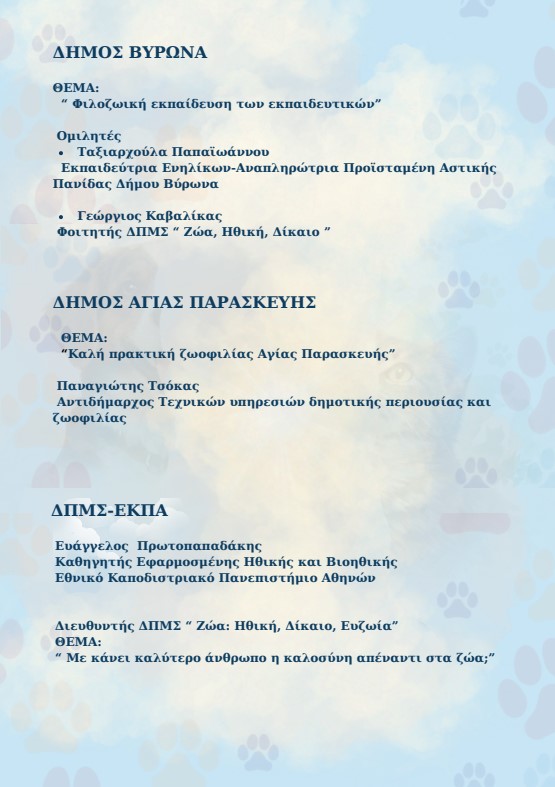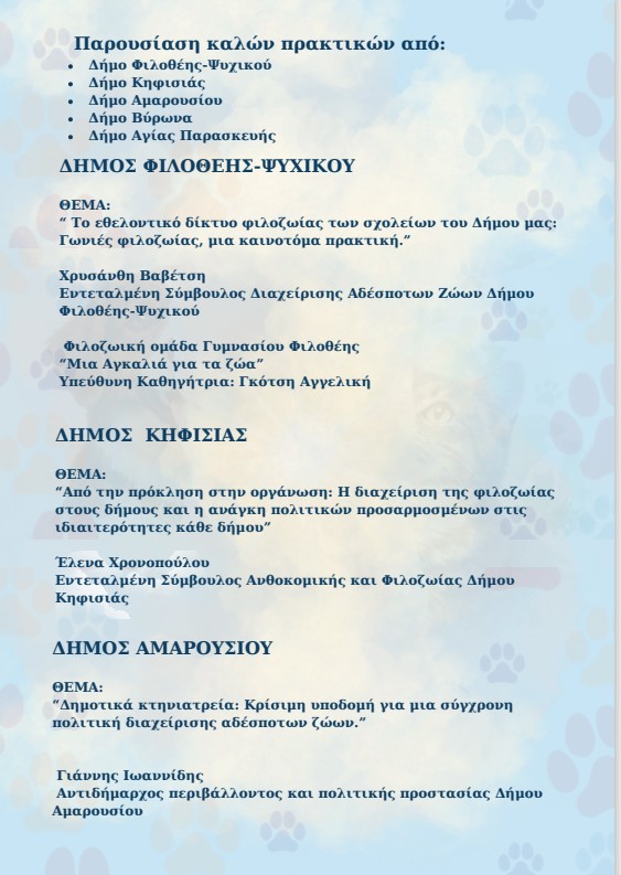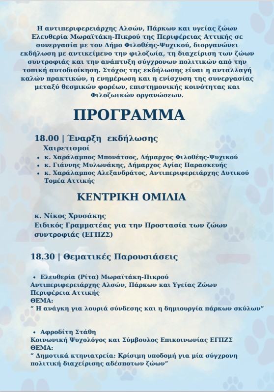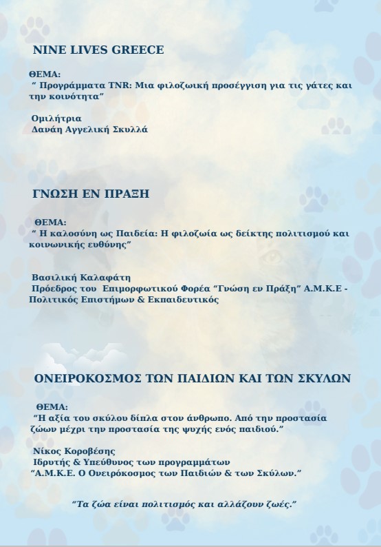 ΠΡΟΣΚΛΗΣΗ – ΠΡΟΓΡΑΜΜΑ ΕΚΔΗΛΩΣΗΣ “Η Καλοσύνη μέσα από τα Μάτια των Ζώων”