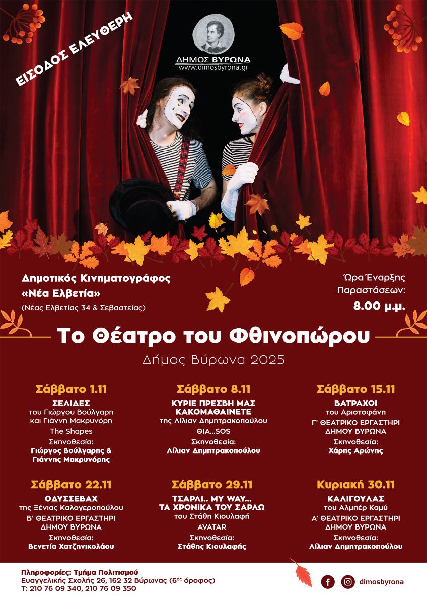 Το Β’ Θεατρικό Εργαστήρι Δήμου Βύρωνα στο πλαίσιο των εκδηλώσεων «Θέατρο του Φθινοπώρου», παρουσιάζει την παράσταση ΟΔΥΣΣΕΒΑΧ, το Σάββατο 22 Νοεμβρίου στον Δημοτικό Κινηματογράφο «Νέα Ελβετία» και ώρα 8.00 μ.μ.