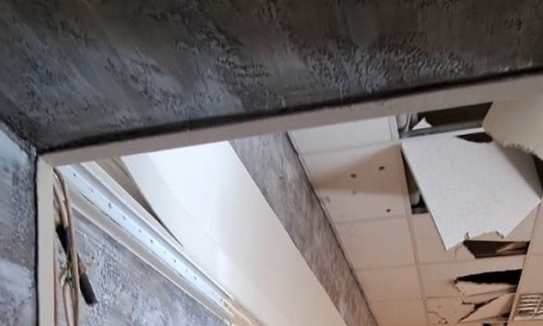 • Καταστροφή τμημάτων ψευδοροφής στο ισόγειο και στον 1ο όροφο